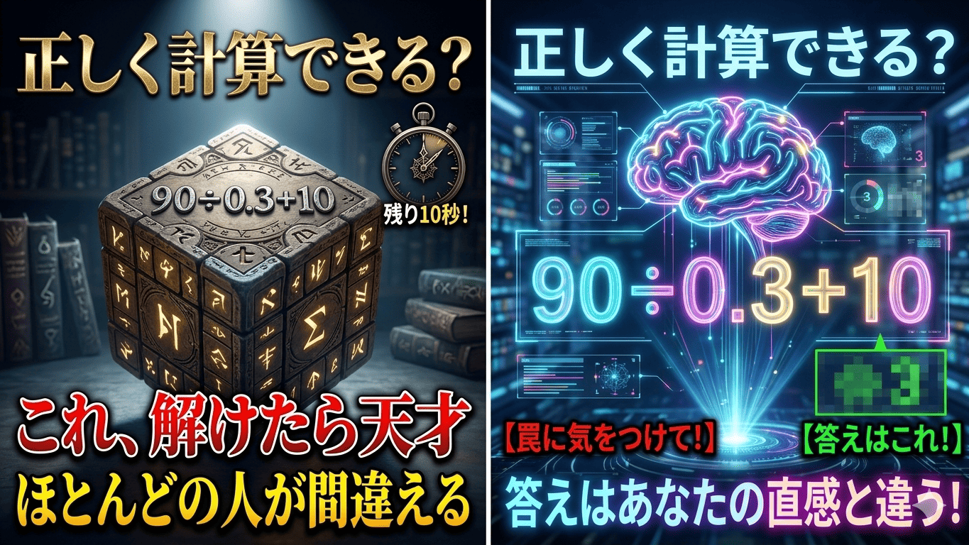 一見すると簡単に見える計算問題「90÷0.3+10」だが、正しく解くためには計算の順番をしっかり理解しておく必要がある。このような問題は、日常的な計算力だけでなく、基本的な数学のルールをどれだけ正確に覚えているかを試すものでもある。特に小数が含まれる場合、多くの人が直感的に間違った答えを出してしまうことがあるため注意が必要である。 この問題を正しく解くためには、「どの計算を先に行うか」という順序のルールが重要になる。単純に左から順番に計算するのではなく、数学で決められた優先順位に従って処理する必要がある。 四則演算の基本ルール 計算には「四則演算の順序」という基本ルールがある。これは、掛け算と割り算を先に行い、その後に足し算と引き算を行うというものである。このルールは、小学校の算数でも習う基本事項であり、どんな複雑な計算でも必ず守らなければならない。 「90÷0.3+10」の場合も、このルールに従って考えると、まず割り算を先に計算し、その結果に10を足すという流れになる。この順番を守らないと、全く異なる答えになってしまうため注意が必要である。 小数の割り算の考え方 この問題で多くの人がつまずくポイントは「90÷0.3」という部分である。小数で割る計算は、整数での割り算に比べて少し難しく感じることがある。しかし、基本的な考え方を理解すれば簡単に解くことができる。 0.3は分数で表すと「3/10」である。つまり「90÷0.3」は「90÷(3/10)」と同じ意味になる。分数で割る場合は逆数を掛けるというルールがあるため、「90×(10/3)」と計算することができる。 この計算を進めると、90×10÷3となり、まず90÷3=30、次に30×10=300となる。したがって、「90÷0.3」の答えは300になる。 正しい答えの導き方 ここまでの計算を踏まえて、問題全体を解いていく。まず割り算の部分である「90÷0.3」を計算し、その結果は300になる。その後に10を足すため、300+10を計算する。 この結果、最終的な答えは310となる。つまり「90÷0.3+10」の正しい答えは310である。 一方で、もし計算の順番を間違えて「0.3+10」を先に計算してしまうと、全く違う結果になってしまう。このようなミスは非常に多いため、常に計算の優先順位を意識することが重要である。 よくある間違いと注意点 この問題でよくある間違いの一つは、小数の割り算を正しく理解していないことによるミスである。例えば「90÷0.3」を「90÷3」と同じように考えてしまい、30と答えてしまうケースがある。しかし実際には0.3は1より小さい数であるため、割ると値は大きくなる点に注意しなければならない。 また、計算の順序を無視して左から順番に計算してしまうミスも多い。数学では順序が非常に重要であり、ルールに従わないと正しい答えにたどり着くことはできない。 計算力を高めるためのコツ このような問題を正しく解くためには、基本ルールをしっかり理解することが重要である。特に四則演算の順序と小数の扱いは、どの計算にも共通する基礎であるため、繰り返し練習することで自然に身につけることができる。 また、計算の途中で一度立ち止まり、「今どの計算をしているのか」を確認する習慣をつけることも有効である。焦って計算を進めるとミスが増えるため、丁寧に順番を確認しながら進めることが大切である。 この問題はシンプルでありながら、基本の理解が問われる良い例である。正しい順番で計算する力を身につけることで、より複雑な問題にも対応できるようになるだろう。